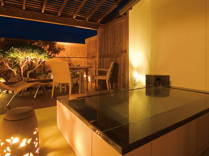 KatsuuraGyoen is proud to offer guests an open-air bath with an expansive, open feel as well as stylish, refined rooms. Its Ten suite on the uppermost floor, which includes a private open-air bath and which won the Gold Prize at the 2017 OMOTENASHI Selection competition, invites you to samplea premium travel experience.