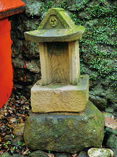 砂岩で造られた石の祠の右の側面に「〇〇〇羽指中」の文字をわずかに確認することができる。三輪崎の羽指達が奉納したものと推測される。金光稲荷神社の一角に立つ。