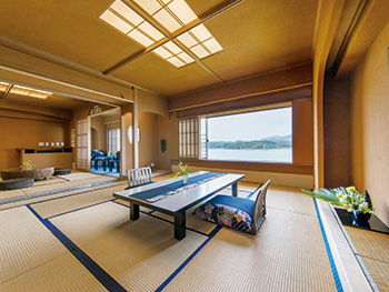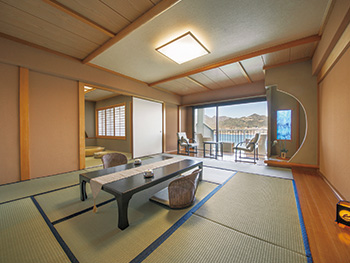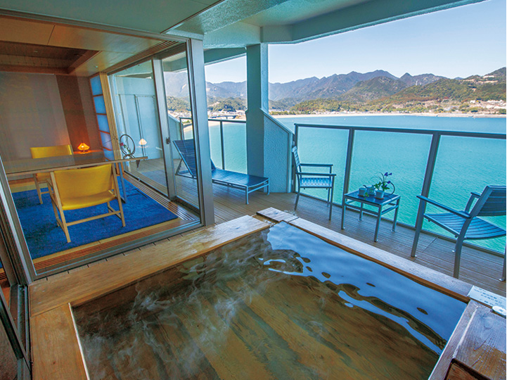 開放感あふれる露天風呂と、趣向を凝らした客室が自慢。とりわけ「OMOTENASHI SELECTION」2017年度金賞を受賞した、最上階の露天風呂付スイートルーム「天~Ten~」では、極上の旅時間を過ごすことができる。