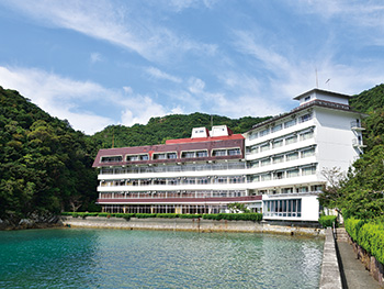 太地くじら浜公園にある温泉宿。趣向を凝らした特別フロア「花游亭」をはじめさまざまなタイプの客室があり、全室オーシャンビュー。広い庭園には四季の花が咲き乱れる。